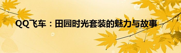 在《QQ飞车》中,田园时光套装背后有着一段感人至深的故事。这个故事发生在一个美丽的田园小镇,主人公在这里度过了快乐的时光。游戏中,玩家可以通过完成各种任务和挑战,获得这款套装,并解锁背后的故事。这个故事充满了温情和感动,让玩家在游戏中体验到不一样的情感与共鸣。