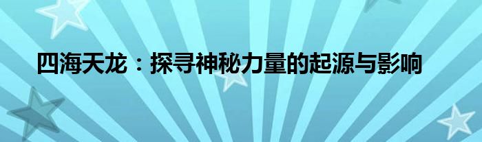 四海天龙作为一个神秘而引人入胜的关键词,已经吸引了众多人的关注和好奇。在深入探究这一主题的丰富内涵时,我们可以发现它在各个领域都有着自己独特的影响力,涉及到历史、文化、神话传说等多个方面。本文将围绕四海天龙这一主题展开,探寻其背后的神秘力量的起源与影响。