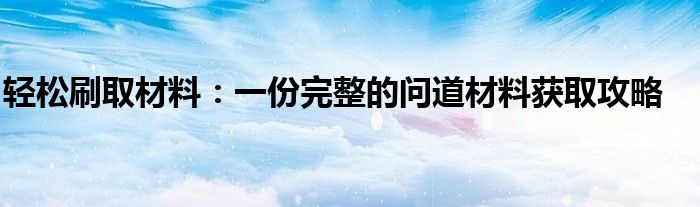 本文将为大家带来一份完整的问道刷材料攻略,帮助玩家更好地掌握游戏材料获取的方法与技巧,节省时间,提高游戏效率。本篇攻略将分为以下几个部分:材料种类介绍、刷材料地点推荐、刷材料技巧分享以及常见问题解答。