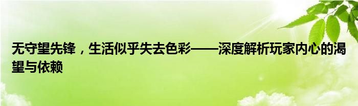 无守望先锋,生活似乎失去色彩——深度解析玩家内心的渴望与依赖