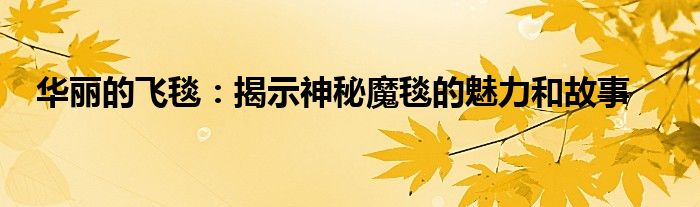 本文将探讨华丽的飞毯这一主题,揭示神秘魔毯的魅力和故事。从古至今,魔毯在许多文化中都是一个令人向往的存在,人们将它视作神话、传说中的奇幻之物。在今天的文章中,我们将一起探索飞毯的起源、发展以及它在不同文化中的应用和象征意义。