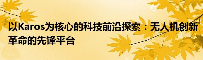 以Karos为核心的科技前沿探索:无人机创新革命的先锋平台