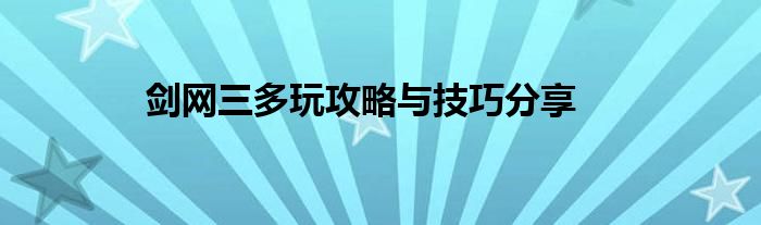 剑网三多玩攻略与技巧分享