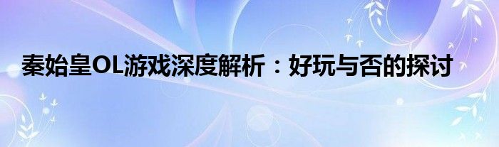 秦始皇OL游戏深度解析:好玩与否的探讨