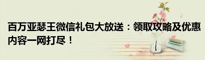 百万亚瑟王微信礼包是为了回馈广大玩家而推出的福利活动,其中包含了游戏道具、金币、VIP特权等丰厚奖励。只要你是百万亚瑟王的玩家,就有机会领取这些礼包,让你在游戏中更加轻松自如。