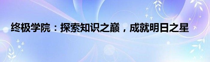 终极学院是一个追求卓越、实现梦想的地方。在这里,学生不仅可以接触到最前沿的知识,还能得到全面的发展和提升。如果你渴望知识、追求梦想,那么终极学院将是你的不二之选。