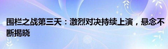围栏之战第三天:激烈对决持续上演,悬念不断揭晓
