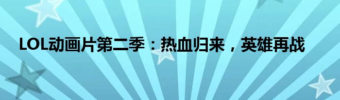 总之,LOL动画片第二季将继续为观众们带来精彩的故事、精彩的战斗和精彩的角色。让我们一起期待它的播出,一起见证英雄们的热血归来和再次战斗!