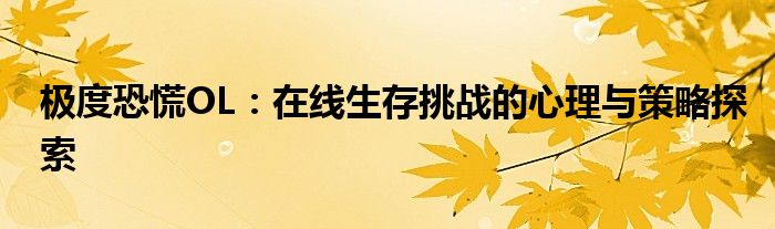 极度恐慌OL:在线生存挑战的心理与策略探索