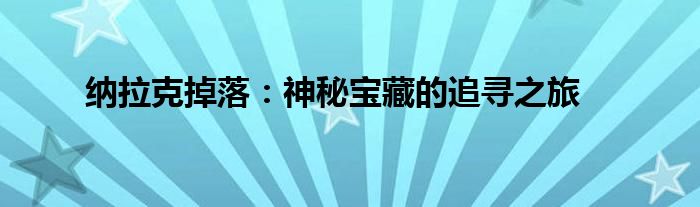 让我们一起踏上这段神秘宝藏的追寻之旅,探寻纳拉克掉落的真相,见证这段充满冒险与探寻的旅程。