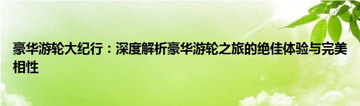 豪华游轮大纪行:深度解析豪华游轮之旅的绝佳体验与完美相性
