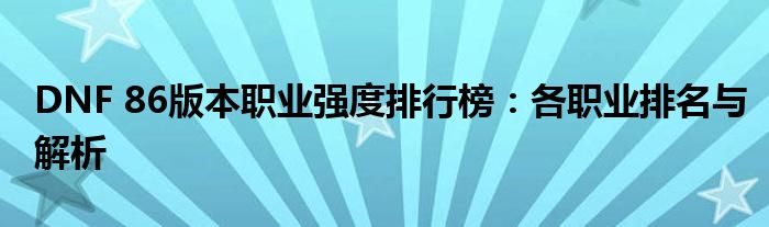 DNF 86版本职业强度排行榜:各职业排名与解析
