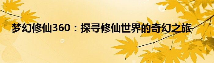梦幻修仙360:探寻修仙世界的奇幻之旅