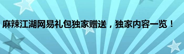 麻辣江湖网易礼包独家赠送,独家内容一览!