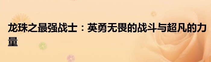 龙珠之最强战士:英勇无畏的战斗与超凡的力量