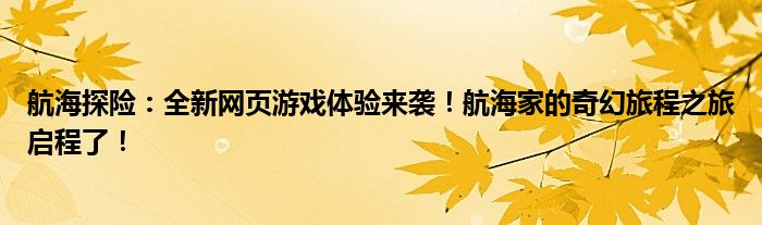 航海探险:全新网页游戏体验来袭!航海家的奇幻旅程之旅启程了!