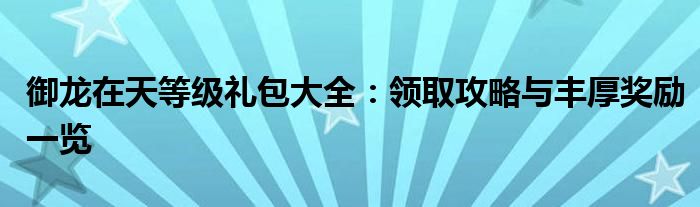 本文将详细介绍在热门网络游戏《御龙在天》中,不同等级对应的礼包内容以及领取攻略。随着玩家等级的提升,可以领取到不同等级的礼包,每个礼包都包含了丰厚的奖励,如珍贵道具、游戏币、经验加倍卡等。本指南旨在帮助玩家更好地了解游戏中的这一福利机制,快速获取大量资源和奖励。