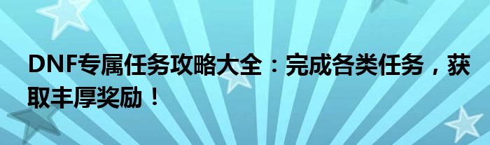 DNF专属任务攻略大全:完成各类任务,获取丰厚奖励!