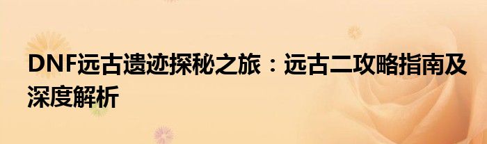 DNF远古遗迹探秘之旅:远古二攻略指南及深度解析