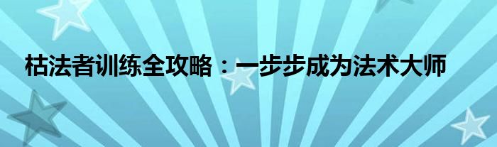 在这篇攻略中,我们将探讨如何成为一名出色的枯法者。无论你是刚开始接触这个领域的新手,还是有一定基础的玩家,都可以在这里找到适合自己的训练方法和技巧。接下来,让我们一起探索如何一步步成为法术大师吧!
