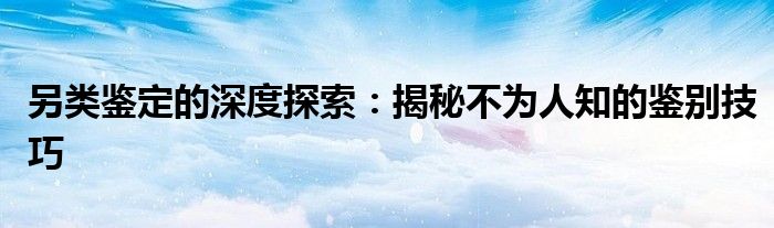 另类鉴定的深度探索:揭秘不为人知的鉴别技巧