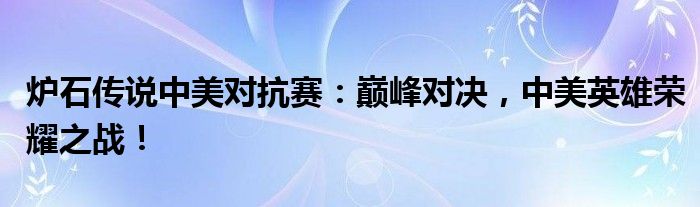 炉石传说中美对抗赛:巅峰对决,中美英雄荣耀之战!
