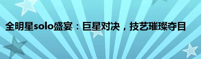 全明星solo盛宴:巨星对决,技艺璀璨夺目