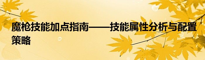魔枪的技能加点是一项需要谨慎考虑的任务,玩家需要根据自己的游戏需求、战斗情况和团队需要进行合理配置。本文提供的技能属性分析与配置策略,希望能为玩家提供一些参考和帮助。