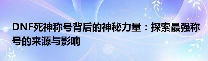 DNF死神称号背后的神秘力量:探索最强称号的来源与影响