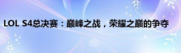 在电子竞技的世界中,每年的大型赛事都会引起全球玩家的关注与期待。其中,LOL(英雄联盟)的年度总决赛更是备受瞩目。作为电竞迷们翘首以盼的盛事,LOL S4总决赛汇聚了全球最优秀的战队和顶尖选手,展开了一场巅峰之战。