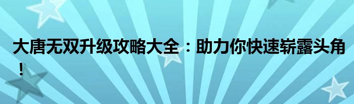 大唐无双升级攻略大全:助力你快速崭露头角!