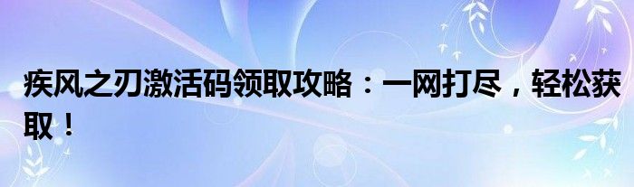 本文将为您详细介绍“疾风之刃”游戏激活码的领取方法。我们将从多个渠道为您搜集最新的激活码信息,并提供详细的领取步骤,帮助您轻松获得游戏激活码,畅玩游戏!
