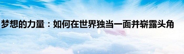 本文将带领读者探索如何成为一个能够独当一面的人物,在世界范围内崭露头角。我们将通过不同角度来解析如何制定并执行自己的梦想计划,如何利用资源和机遇实现自己的梦想。无论是创业还是职业领域的发展,这些方法和技巧都将成为我们在梦想世界中独当一面的有力支持。