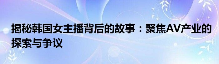 揭秘韩国女主播背后的故事:聚焦AV产业的探索与争议