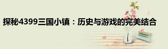 探秘4399三国小镇:历史与游戏的完美结合