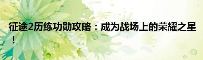 通过本攻略,希望玩家们在《征途2》的战场上能够更快地提升历练功勋,成为战场上的荣耀之星!