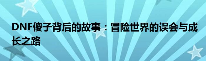 DNF傻子背后的故事:冒险世界的误会与成长之路