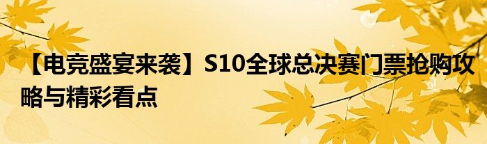 【电竞盛宴来袭】S10全球总决赛门票抢购攻略与精彩看点