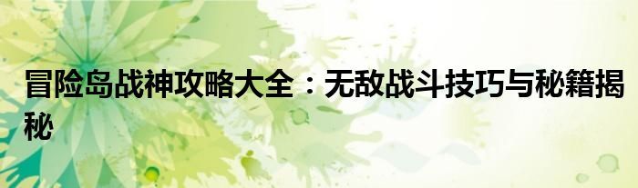《冒险岛》作为一款经典的游戏,吸引了无数玩家的喜爱。在游戏中,战神作为一个重要的角色,拥有强大的战斗能力。本文将为大家带来一份详细的冒险岛战神攻略,帮助大家掌握战神角色的战斗技巧,成为真正的战神!