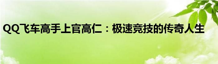 QQ飞车高手上官高仁:极速竞技的传奇人生