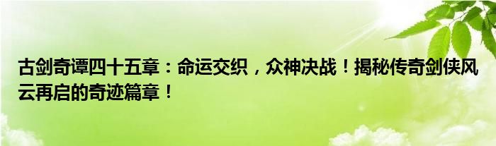 古剑奇谭四十五章:命运交织,众神决战!揭秘传奇剑侠风云再启的奇迹篇章!
