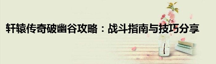 本文将为你详细介绍轩辕传奇游戏中破幽谷的打法,包括战斗准备、队伍配置、战术布局和关键技能使用等方面,帮助你顺利通关破幽谷。