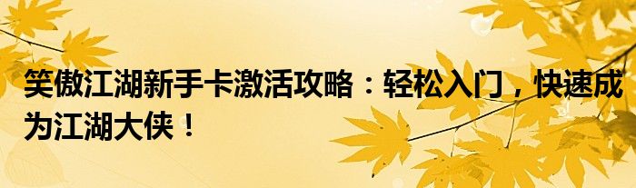 笑傲江湖新手卡激活攻略:轻松入门,快速成为江湖大侠!