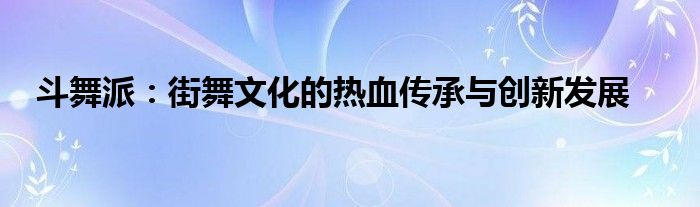 在传承的基础上,斗舞派也在不断进行创新和发展。新一代的舞者们在保留街舞文化的基础上,不断融入新的元素,如现代舞、芭蕾舞等,使得斗舞派的舞蹈形式更加丰富多彩。此外,随着社交媒体的发展,斗舞派也得到了更广泛的传播,吸引了更多年轻人的关注和参与。