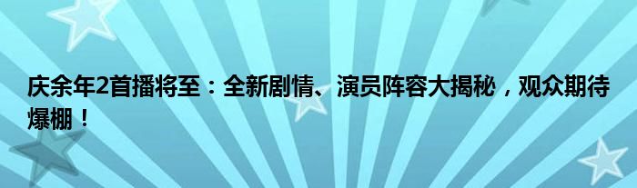 总之,庆余年2作为备受瞩目的剧集,无论是剧情还是演员阵容都备受关注。让我们一起期待它的首播,共同见证这部佳作的出现!