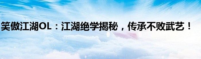 笑傲江湖OL:江湖绝学揭秘,传承不败武艺!