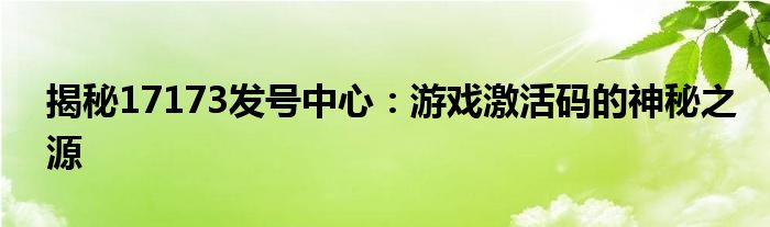 本文将带您深入了解“17173发号中心”,揭开这个神秘的游戏激活码发号平台的神秘面纱。我们将从以下几个方面展开探讨: