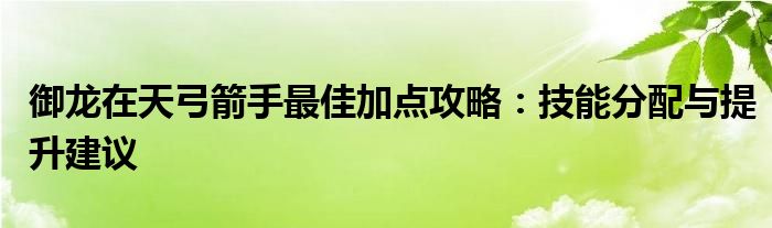 御龙在天弓箭手最佳加点攻略:技能分配与提升建议