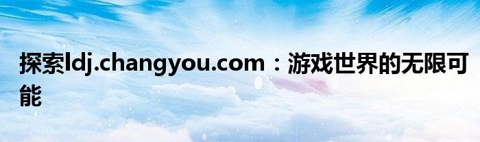 欢迎来到ldj.changyou.com的世界,这是一个充满无限可能的神奇之地。在这里,您可以探索各种各样的游戏,从经典的冒险游戏到最新的动作游戏,应有尽有。我们致力于提供最优质的游戏体验,让您沉浸在游戏的世界之中,享受无尽的乐趣。