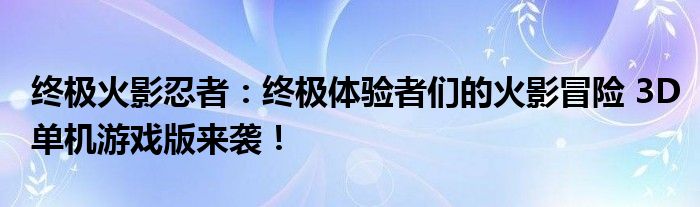 终极火影忍者:终极体验者们的火影冒险 3D单机游戏版来袭!